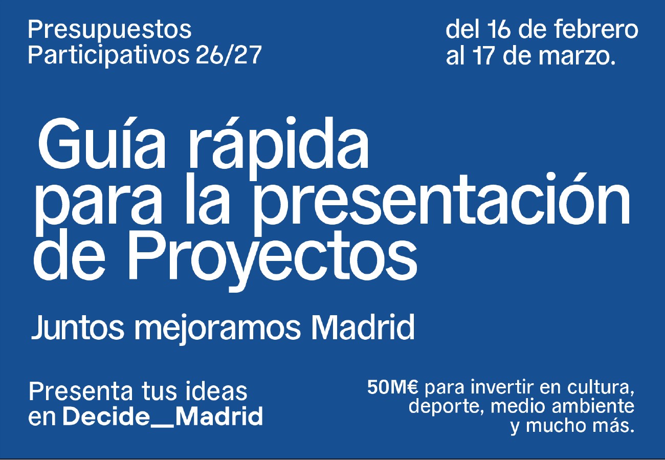 Durante este mes de convocatoria, la Dirección General de Participación Ciudadana, de la que dependen los presupuestos participativos, además, de incluir en la web una guía rápida para la presentación de proyectos, celebrará sesiones presenciales para explicar el proceso y habilitará mesas informativas en todos los distritos para solventar las dudas de los ciudadanos.