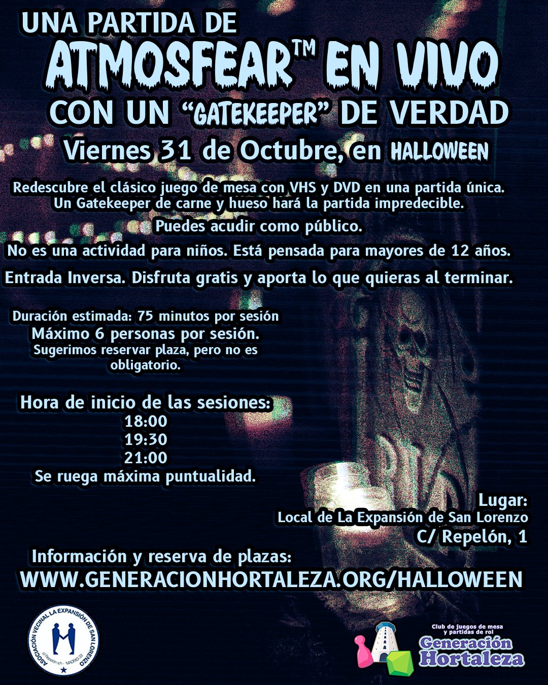 El viernes 31 de octubre el club Generación Hortaleza celebra una sesión de Atmosfear en vivo en la asociación vecinal La Expansión de San Lorenzo (calle Repelón, 6) destinada a mayores de 12 años.