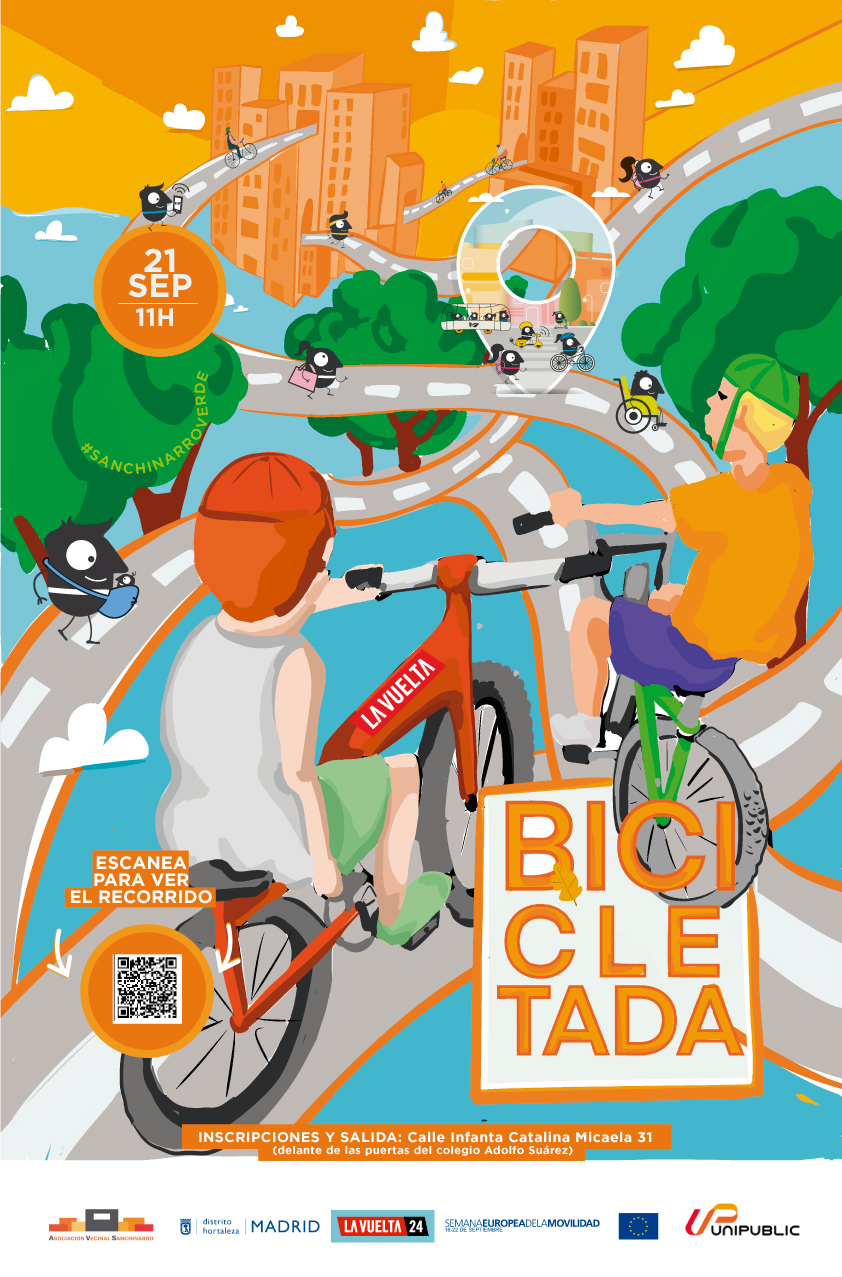Con motivo de la Semana Europea de la Movilidad 2024 (del 16 al 22 de septiembre), cuya campaña lleva por lema “Espacio Público Compartido”, mientras que el lema de la iniciativa sigue siendo “¡Combina y muévete!”, la asociación vecinal Sanchinarro organiza el sábado 21 de septiembre a partir de las 11.00 horas la bicicletada en Sanchinarro 2024, la sexta hasta el momento, para reivindicar el uso de este medio de transporte sostenible y saludable, que saldrá desde la puerta del colegio Adolfo Suárez (calle Infanta Catalina Micaela, 31) y recorrerá la calle Príncipe Carlos.
