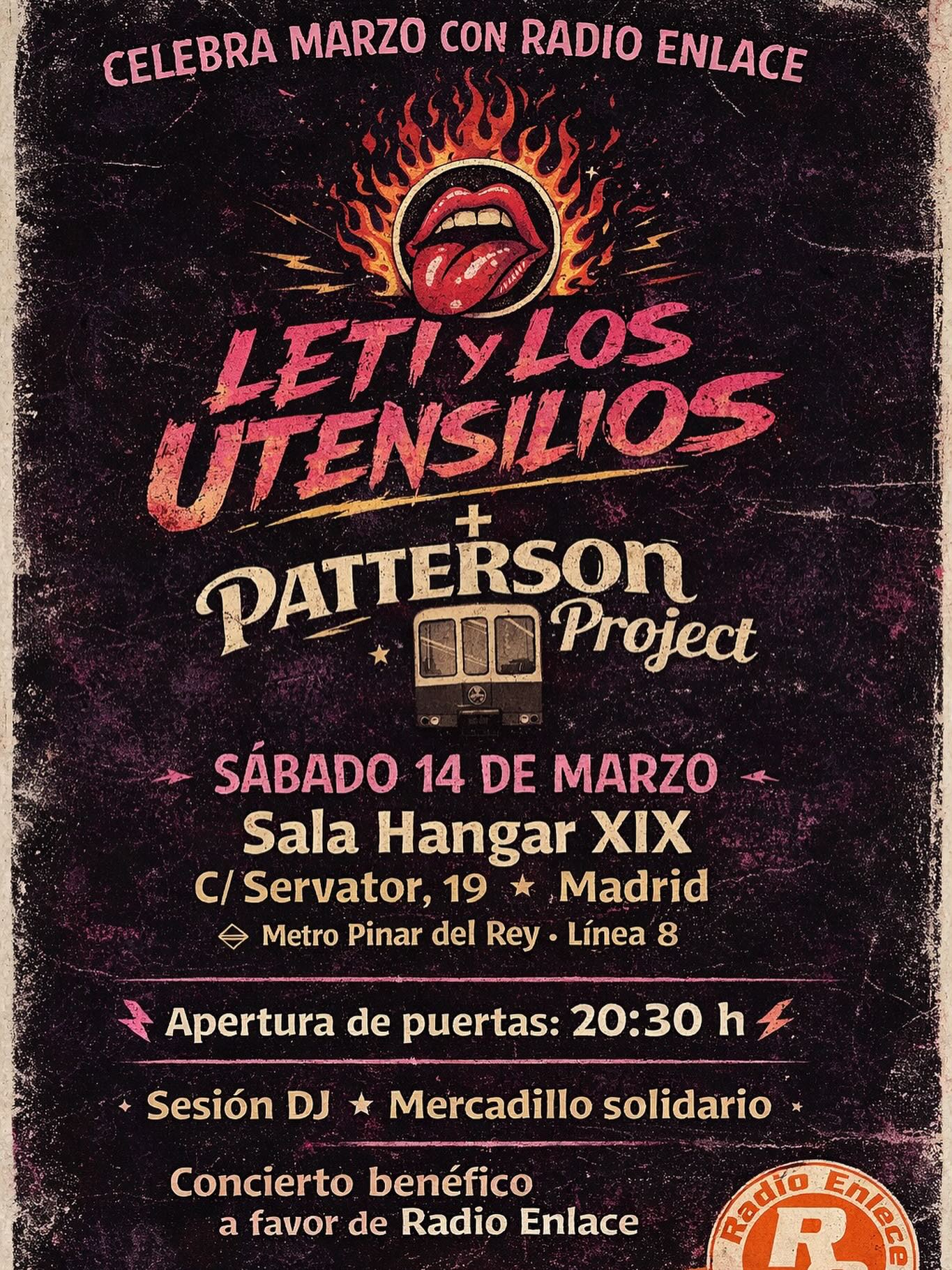 El sábado 14 de marzo a las 20.30 horas, se celebra un concierto benéfico a favor de Radio Enlace, la emisora comunitaria de Hortaleza, en la sala Hangar 19 (calle Servator, 19) del barrio de Canillas.