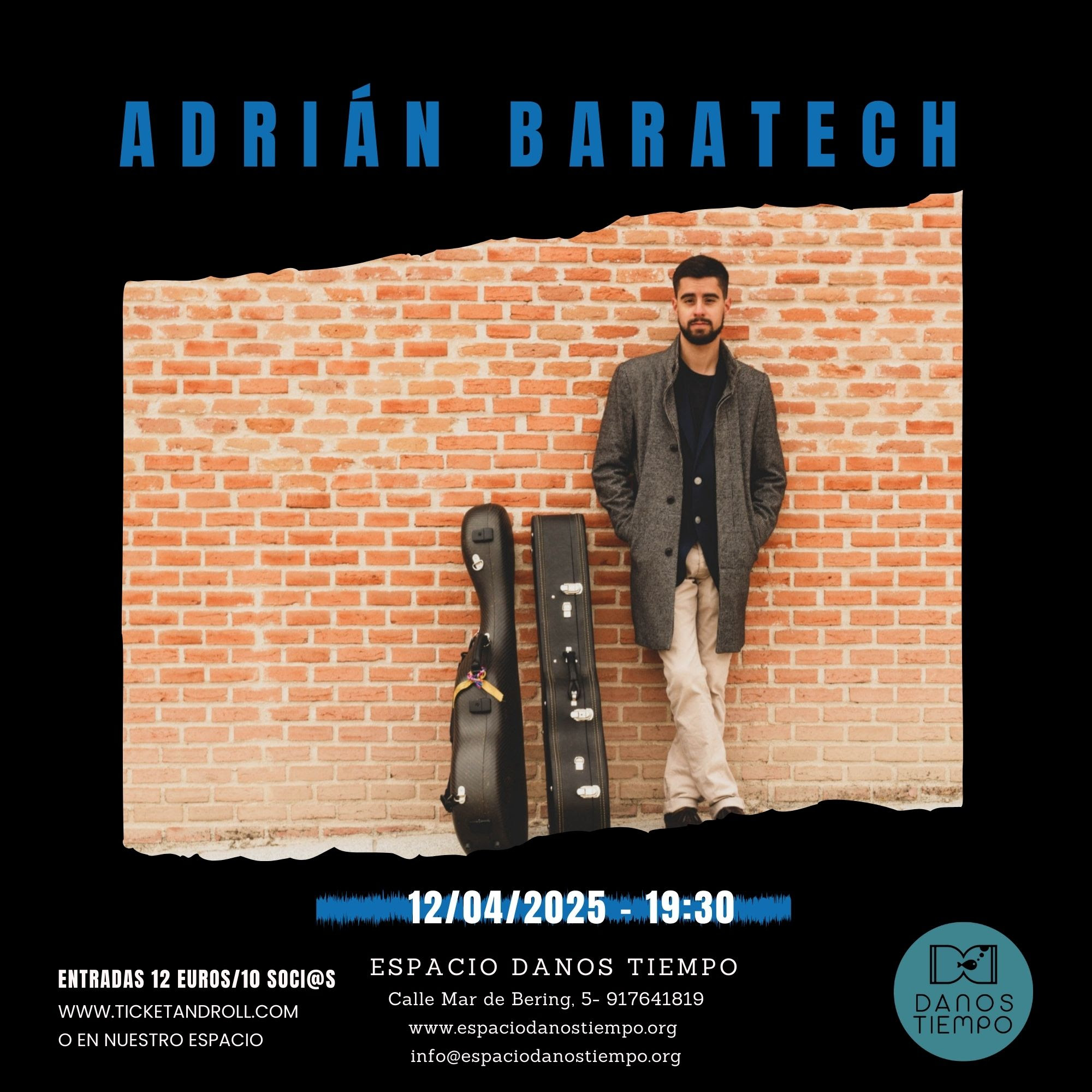El sábado 12 de abril a las 19.30 horas, el Espacio Danos Tiempo continúa su programación cultural del año con el concierto de Adrián Baratech en su local de la calle Mar de Bering, número 5.
