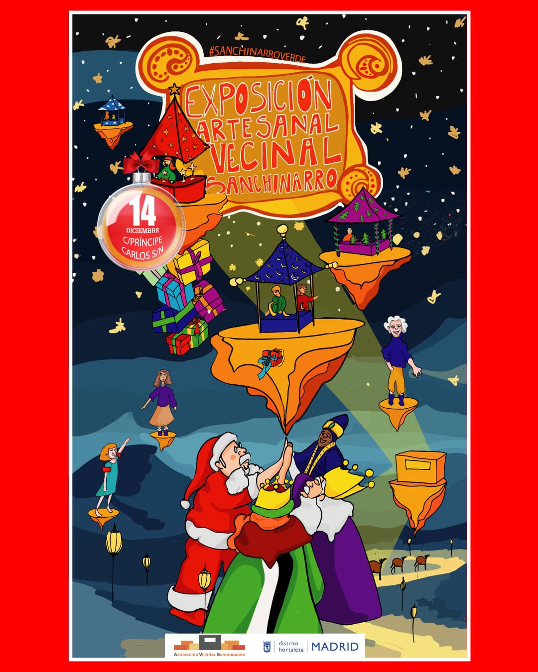 El domingo 14 de diciembre de 10.00 a 15.00 horas, se celebra la exposición artesanal vecinal de diciembre en Sanchinarro organizada por la asociación de vecinos del barrio en la calle Príncipe Carlos, con más de 60 puestos que traen: artesanía, complementos, juguetes, decoración, ropa y libros, entre otros muchos artículos.