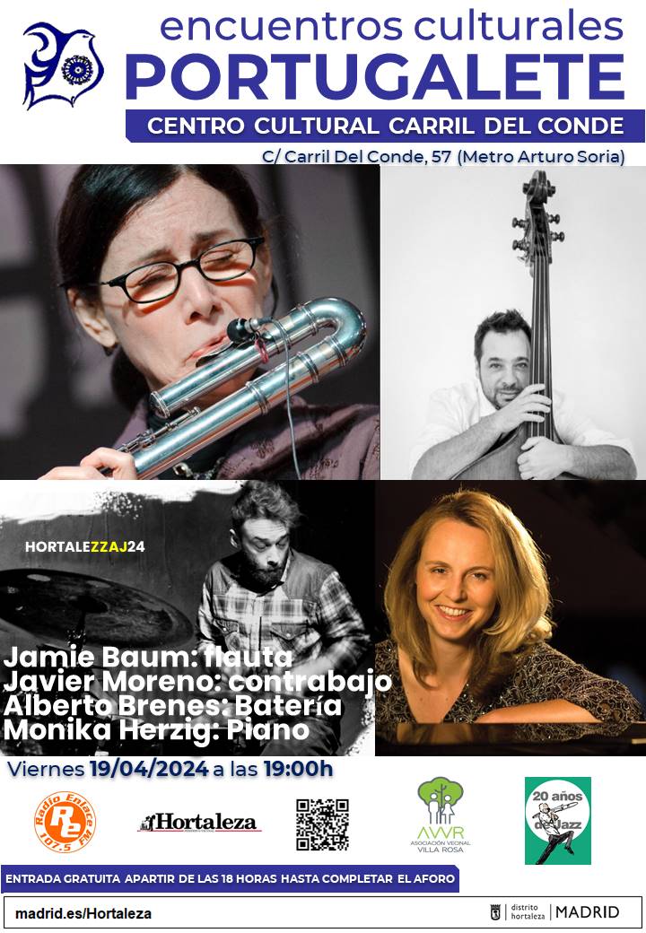 Continúan los conciertos de jazz programados en el Hortalezzaj24 gracias a los Encuentros Culturales Portugalete que se celebran en el centro cultural Carril del Conde (calle Carril del Conde, 57), que este año cumplen su 20 aniversario.