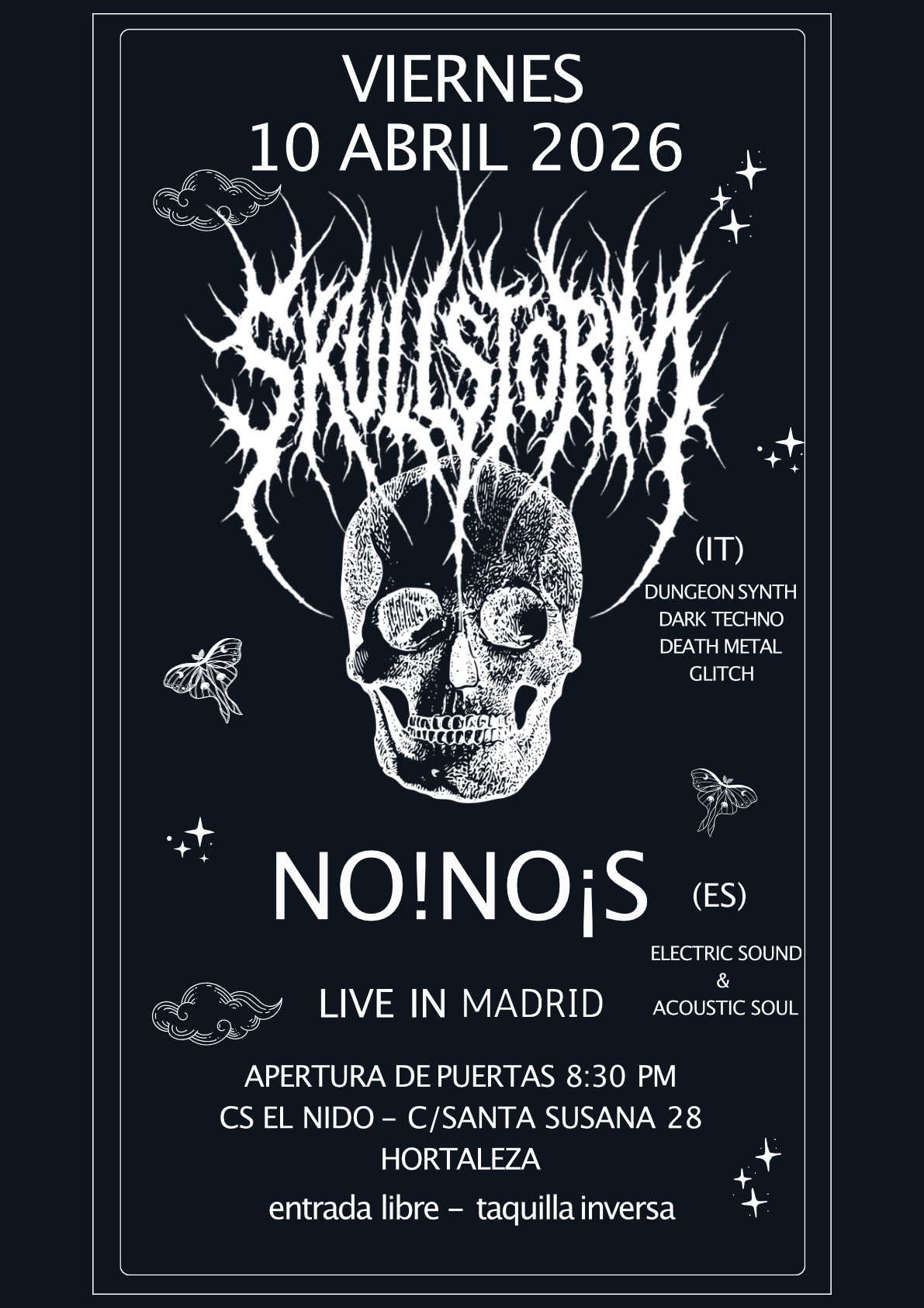 El viernes 10 de abril a las 20.30 horas, se celebra un nuevo concierto en el centro social El Nido (calle Santa Susana, número 28 bajo) con la actuación de los grupos Skullstorm (Torino, Italia) y de N0!n0¡s (Santander).