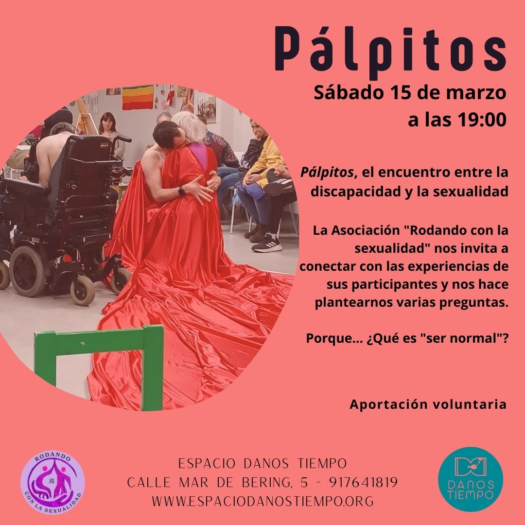 El sábado 15 de marzo a las 19.00 horas, la asociación Rodando con la Sexualidad nos invita a nos invita a conectar con las experiencias de sus participantes y nos hace plantearnos preguntas como qué es «ser normal» en la performance Pálpitos en el Espacio Danos Tiempo (calle Mar de Bering, 5).