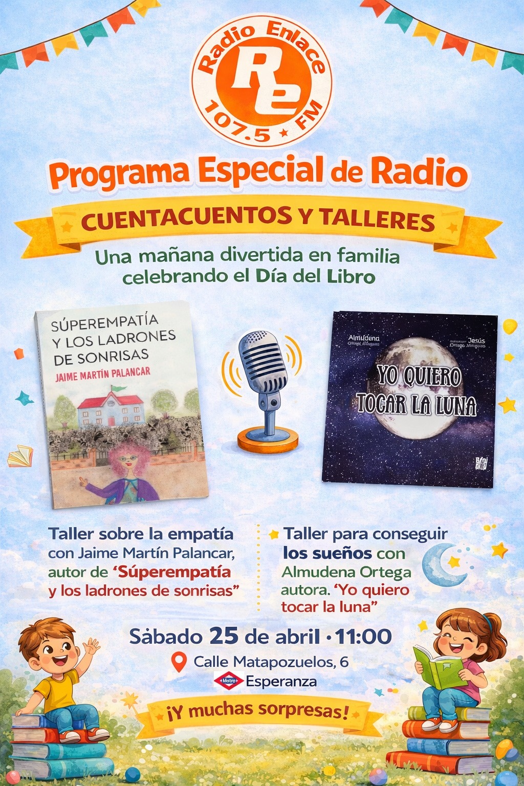 El sábado 25 de abril a las 11.00 horas, Radio Enlace, la emisora comunitaria de Hortaleza, celebra un programa especial de radio, con cuentacuentos y talleres infantiles por el Día del Libro en su local de la calle Matapozuelos, 6.