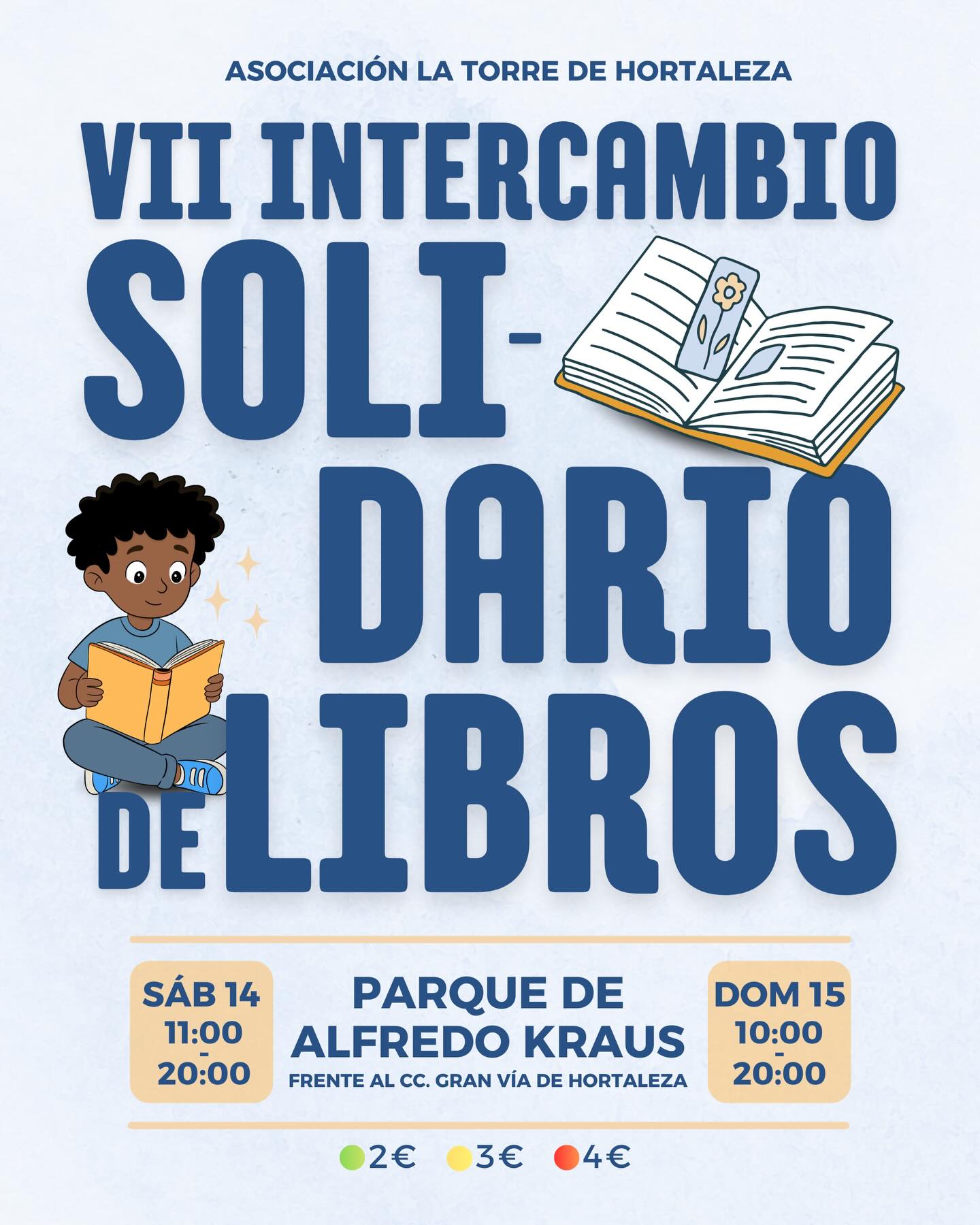 El VI intercambio solidario de libros se instalará el sábado 14 de marzo de 11.00 a 20.00 horas y el domingo 15 de marzo de 10.00 a 20.00 horas en el parque Alfredo Kraus de Hortaleza (frente al centro comercial Gran Vía de Hortaleza), donde se podrán adquirir libros de segunda mano a un precio asequible: 2, 3 y 4 euros.