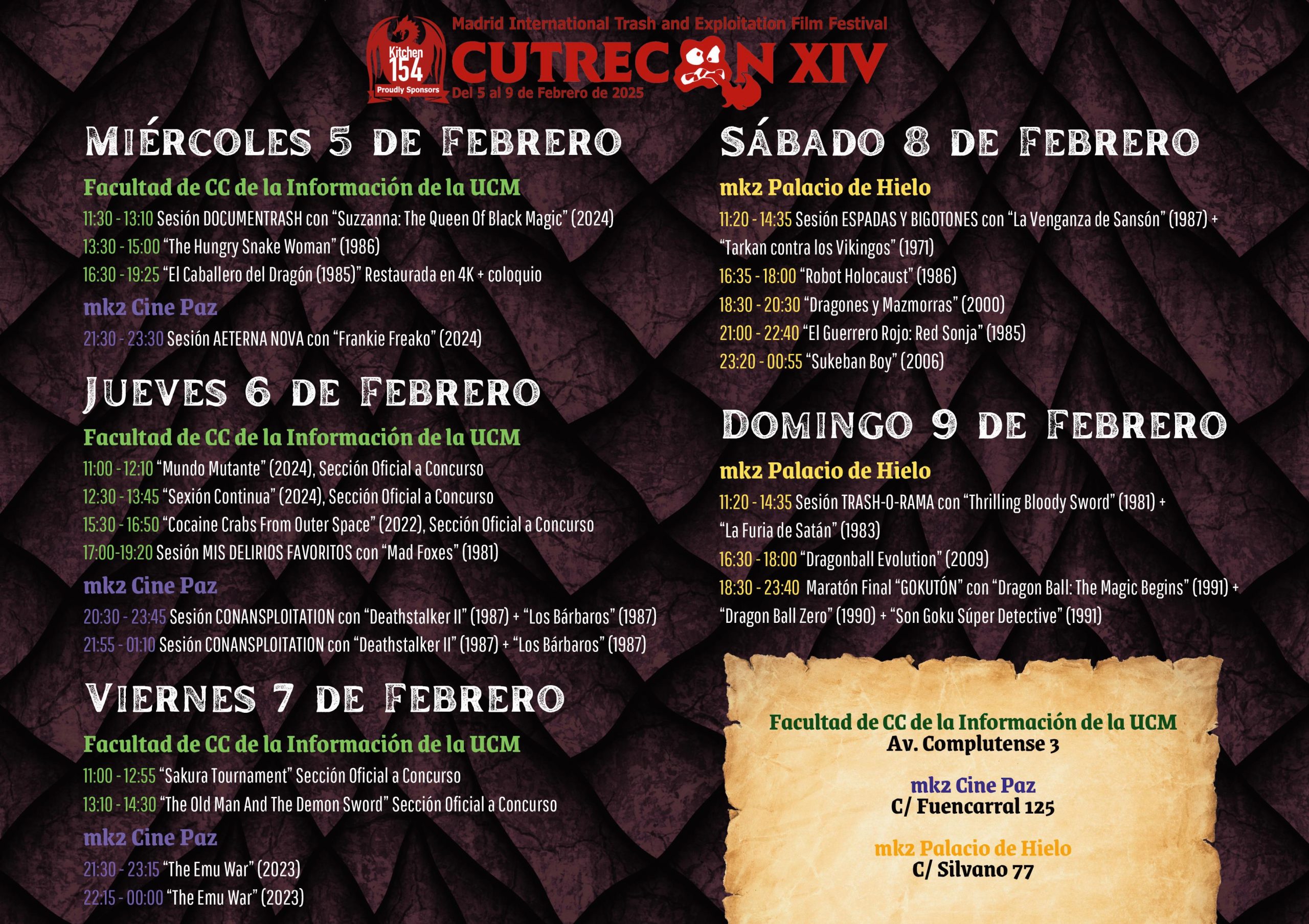 Organizado por los responsables de la veterana web de cine y humor Cinecutre.com, esta decimocuarta edición gira en torno al género de fantasía épica, conocido como espada y brujería, y, como ya es habitual, todas las películas se proyectan en versión original acompañadas de los subtítulos más absurdos y surrealistas.