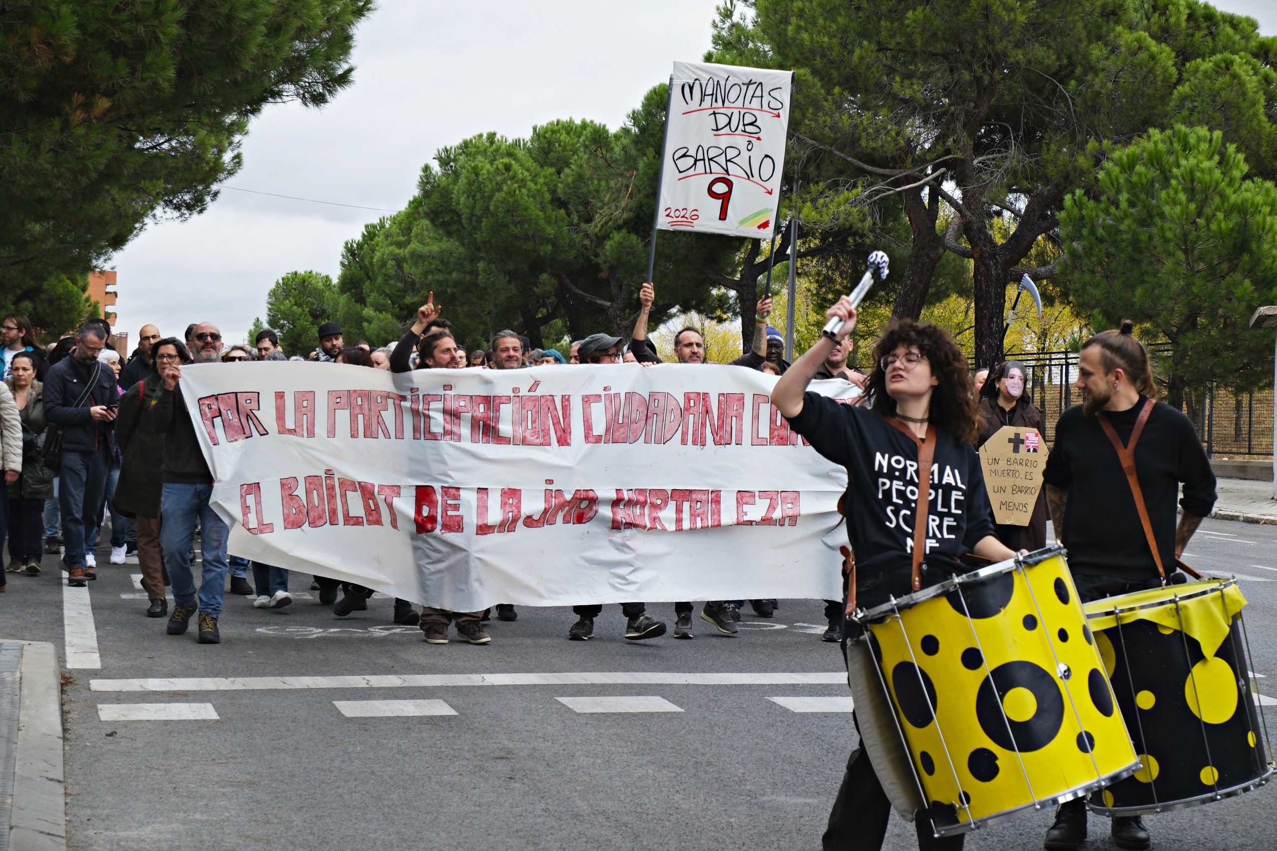 La sanción es el «enésimo ataque» del equipo del concejal David Pérez contra la participación ciudadana, según la Coordinadora de Entidades de Hortaleza, que respaldaba la manifestación convocada este sábado 1 de noviembre por la asociación de Manoteras y los organizadores del festival Manotas Dub Barrio, que ha reunido a más de 200 personas en la glorieta de Santos de la Humosa y ha avanzado al ritmo de la percusión de Sambaleza, el bloco del barrio omnipresente en festejos populares y protestas vecinales desde hace más de 15 años.