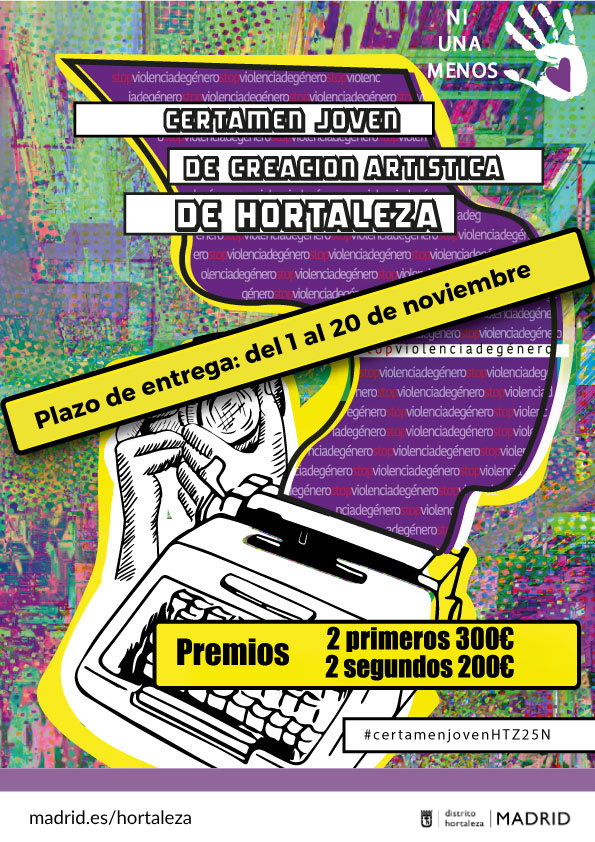 Con dos años de retraso y a “propuesta de la Mesa de Políticas Sociales del Consejo de Proximidad de Hortaleza y acuerdo plenario del distrito de Hortaleza de fecha 18 de julio de 2024”, según se indica en las bases publicadas el pasado 31 de octubre por la Unidad de Participación Ciudadana y Cooperación Público-Social de la Junta Municipal de Hortaleza, desde el pasado sábado 1 de noviembre hasta el próximo 20 de noviembre, queda abierto el plazo de presentación de obras para participar en la cuarta edición del Certamen Joven de Creación Artística de Hortaleza 25N con motivo del Día Internacional de la Eliminación de la Violencia Contra las Mujeres.